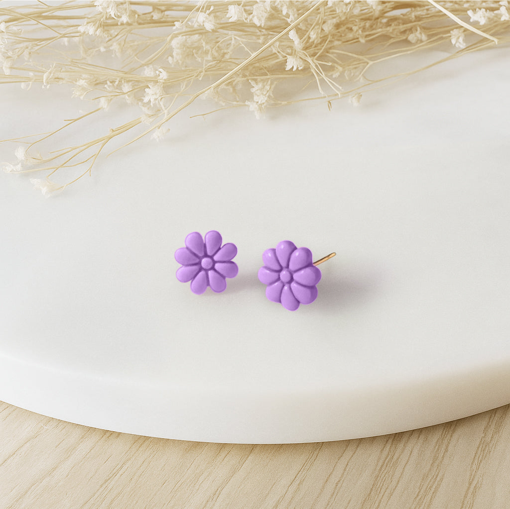 Les boucles "FLORAÉ" se parent de petites fleurs en pâte polymère de 10 mm, déclinées en plusieurs coloris pour s'accorder à votre mood du jour. Montées sur tige en acier inoxydable, elles apportent une touche fraîche et joyeuse. Le petit détail fleuri qui booste instantanément votre style. 🌼