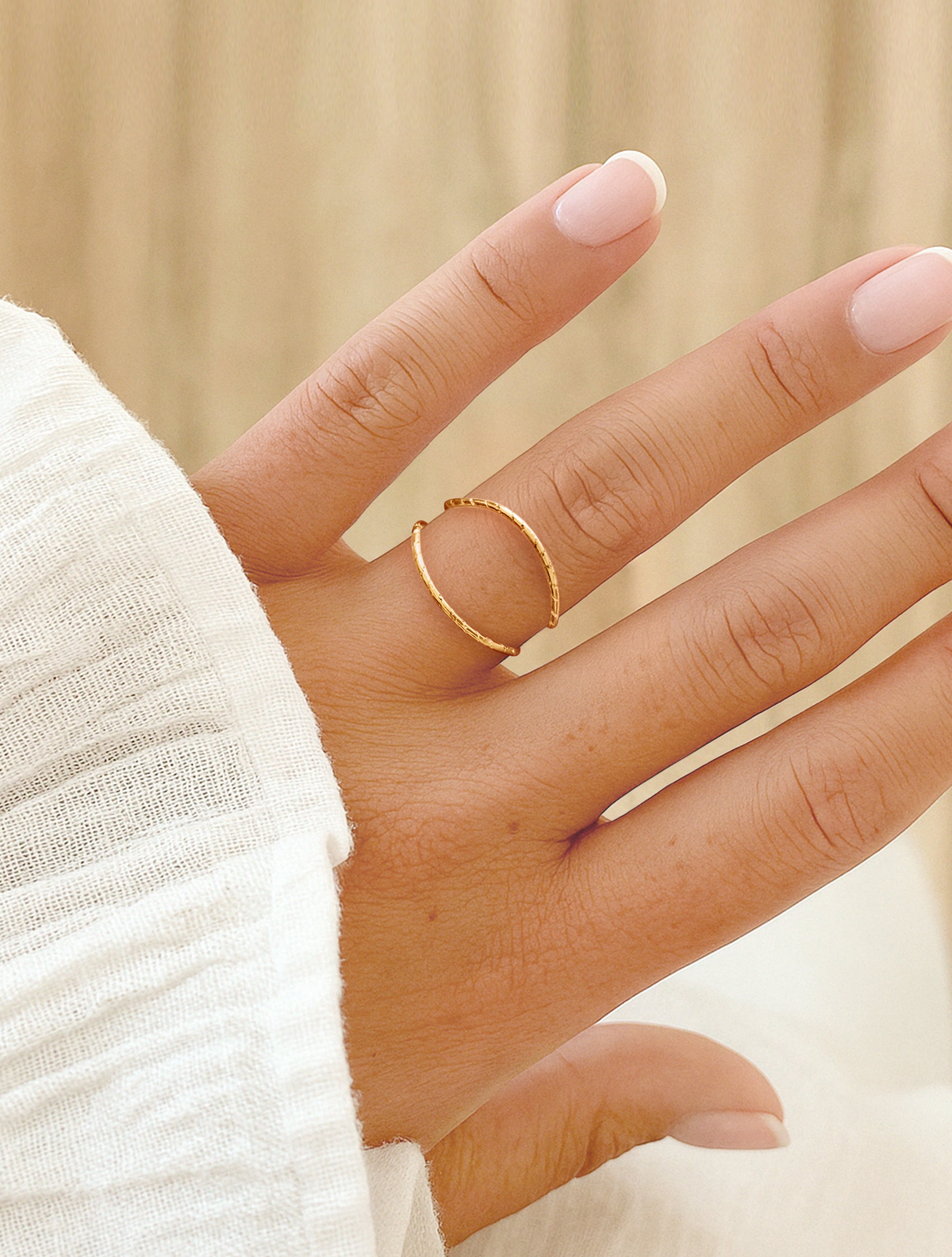 Ajoutez une touche délicate à vos mains avec la Bague "Rose" en plaqué or 3 microns de Lolidou. Le fil fin texturé offre une élégance subtile. Ajustable de la taille 51 à 57, elle résiste à l'eau, au soleil, et ne noircit pas. Poids : 0,82 g, une dorure brillante pour sublimer votre doigt avec légèreté.