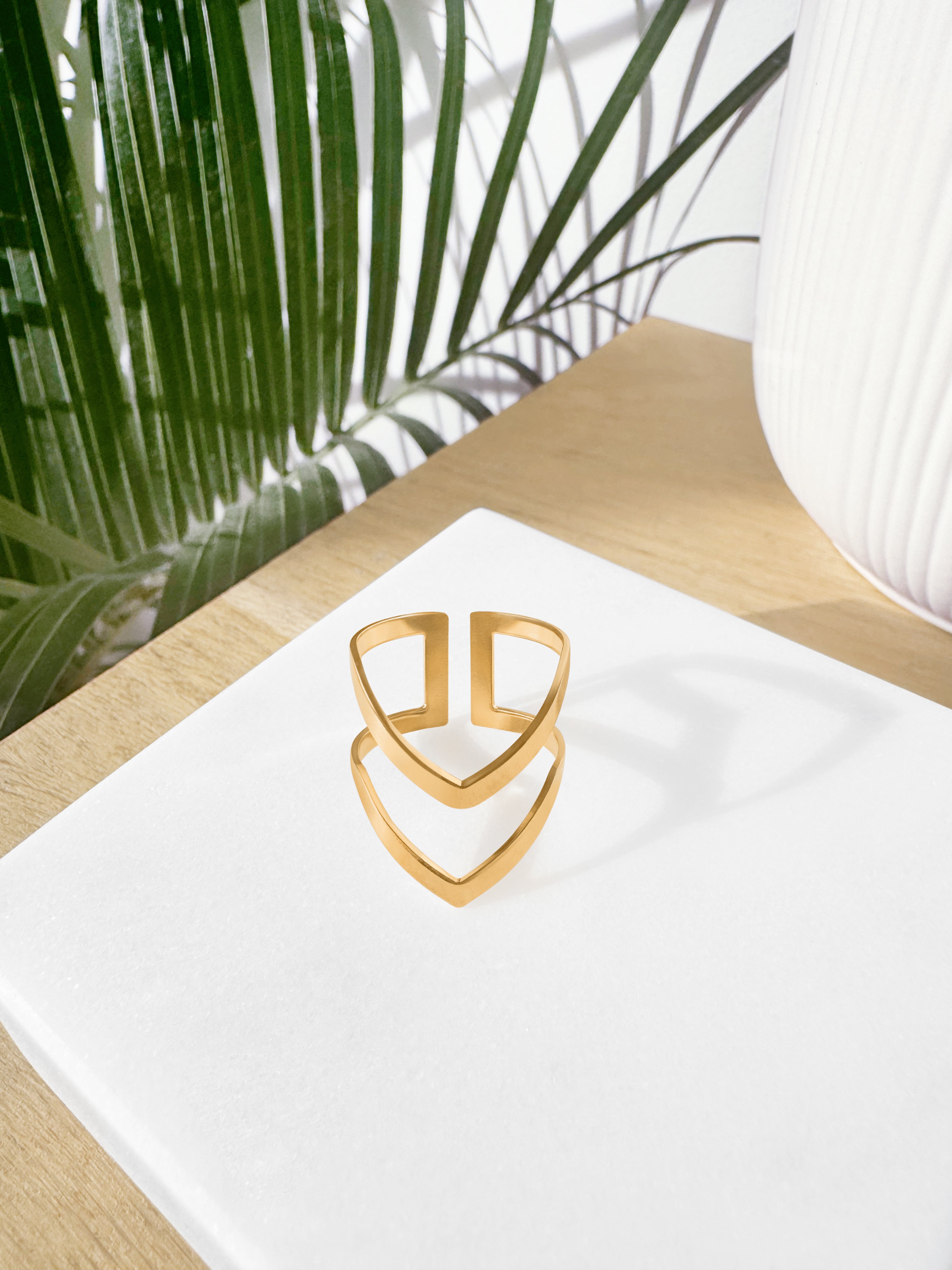 La Bague "THALI" en plaqué or 3 microns de Lolidou arbore un design de double flèche alliant modernité et audace. Son style graphique, avec des lignes nettes et géométriques, lui confère une allure originale et contemporaine. Ajustable de la taille 54 à 61, elle résiste à l'eau, au soleil, et ne noircit pas. Hauteur du corps de la bague : 20 mm.