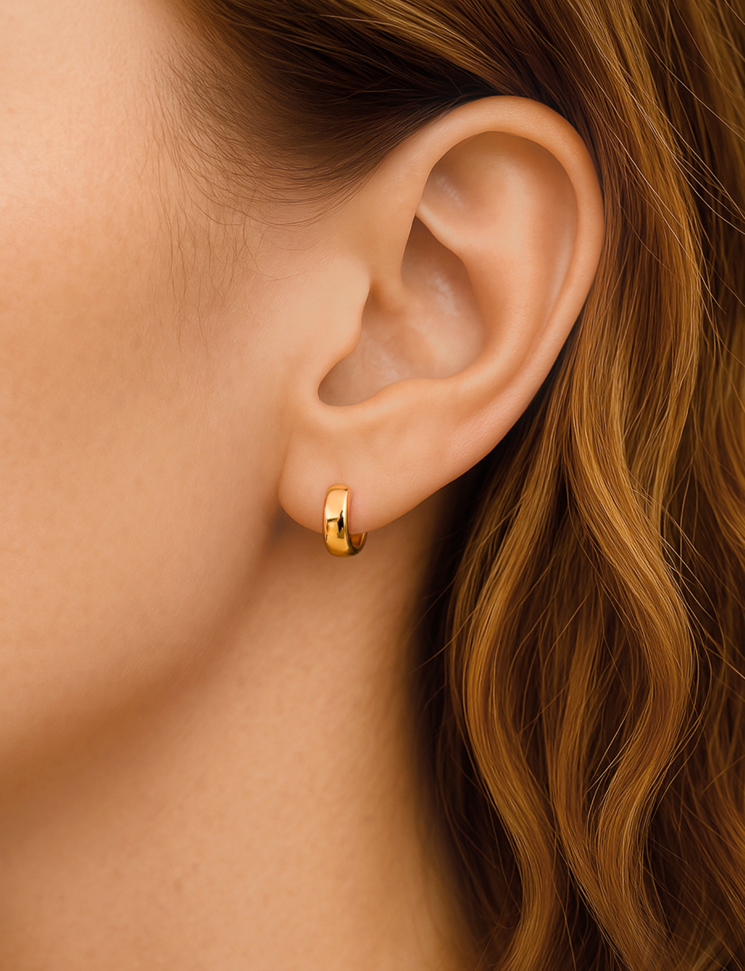 Des créoles épaisses, d’un diamètre de 15 mm, discrètes, élégantes et toujours stylées.