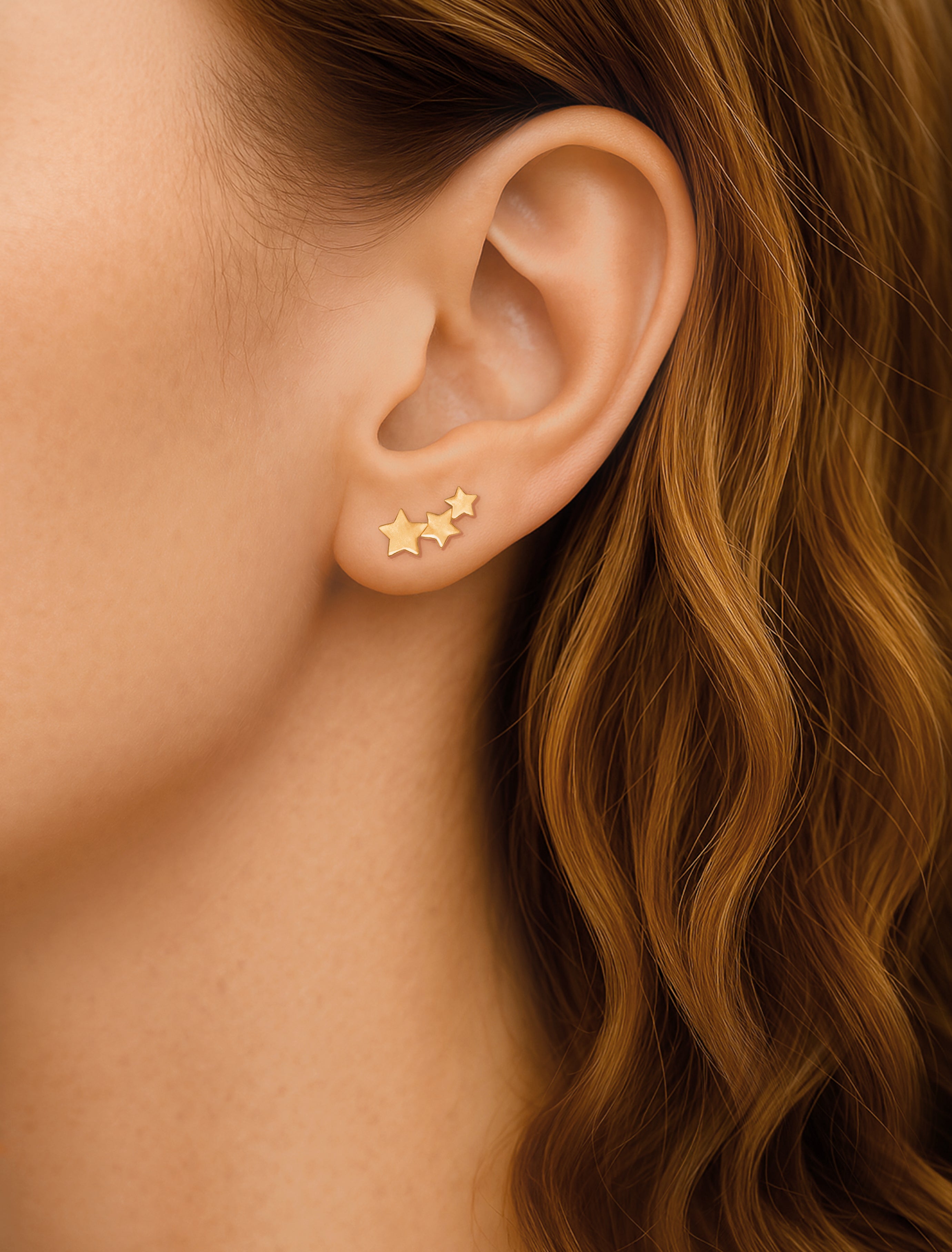 Éclairez votre style avec les boucles d'oreilles "STAR". Ce design élégant avec ces 3 étoiles remonte délicatement le long de l'oreille créant un effet céleste et sophistiqué. Parfaites pour apporter une touche d'éclat à vos tenues. Longueur : 13 mm. Hauteur : 6 mm.