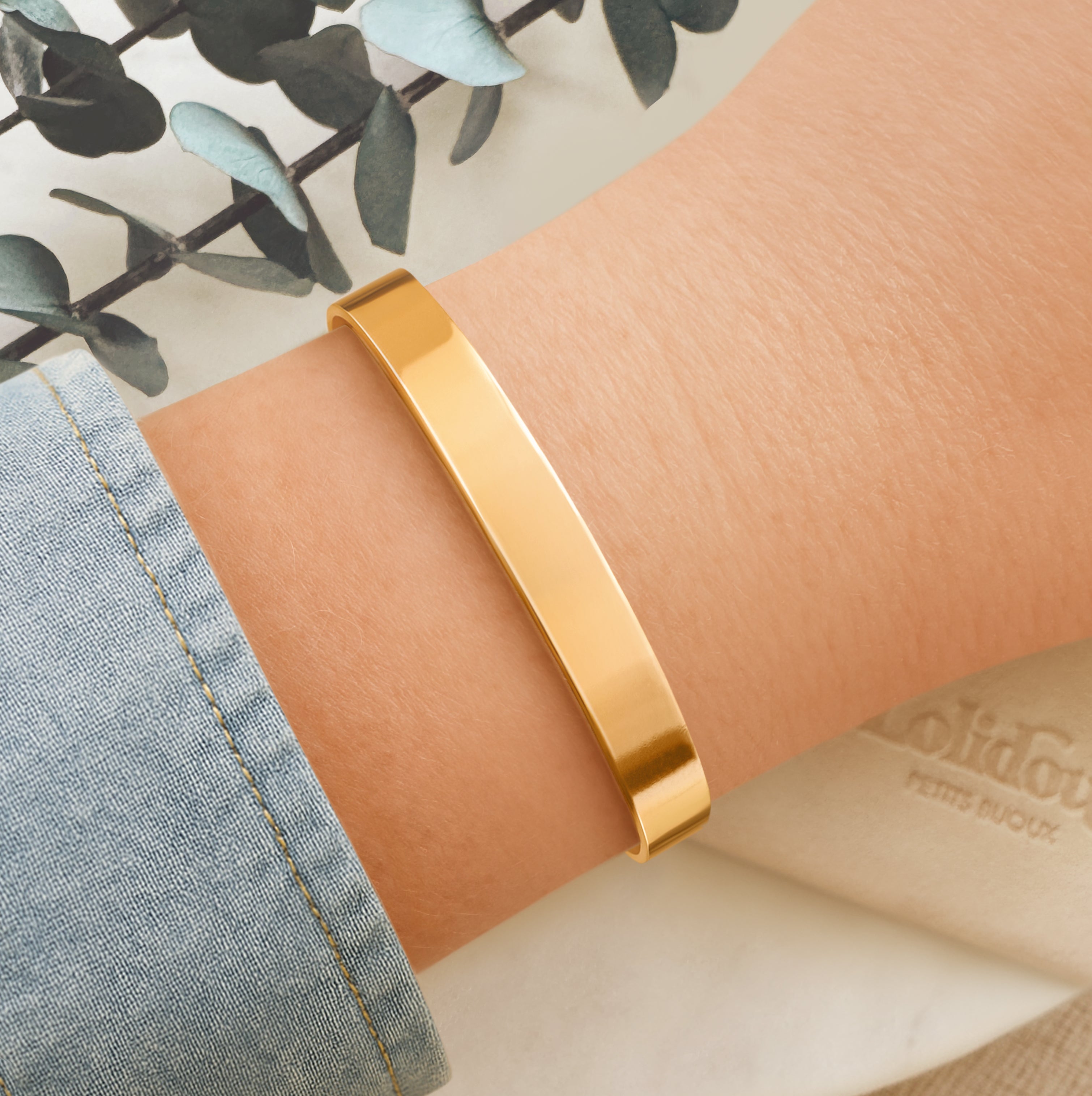 Faites une déclaration de style avec le Jonc "Laena" en plaqué ou 3 microns de Lolidou. Avec son design épais et lisse, une largeur imposante de 8 mm et un diamètre de 60 mm, ce jonc offre une élégance raffinée. Résistant à l'eau, au soleil, et ne noircit pas.