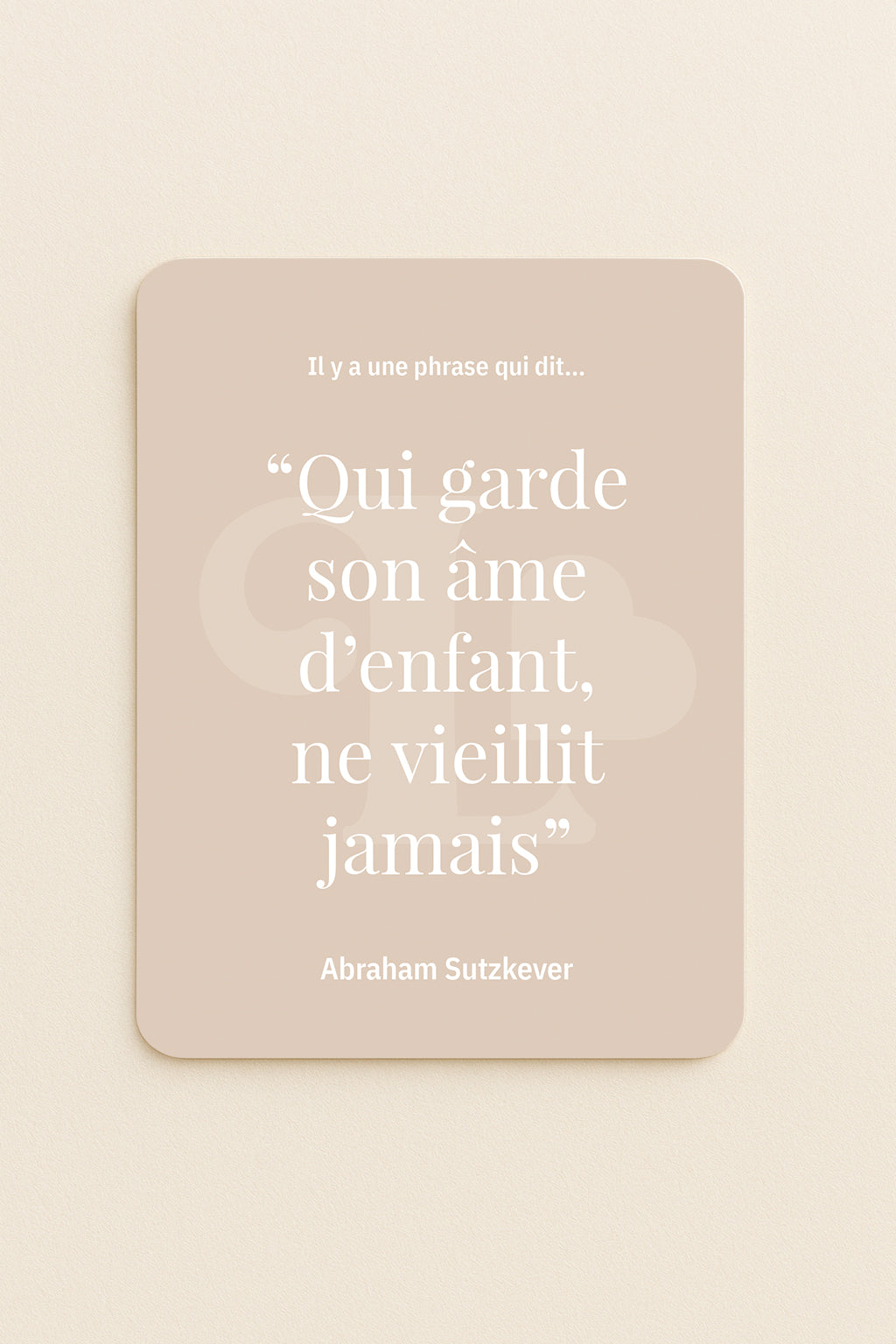 Faites passer un message fort et universel avec notre carte " Âme d'enfant " . Parfait pour accompagner un bijou, sublimer un cadeau ou simplement envoyer une belle dose d'inspiration.