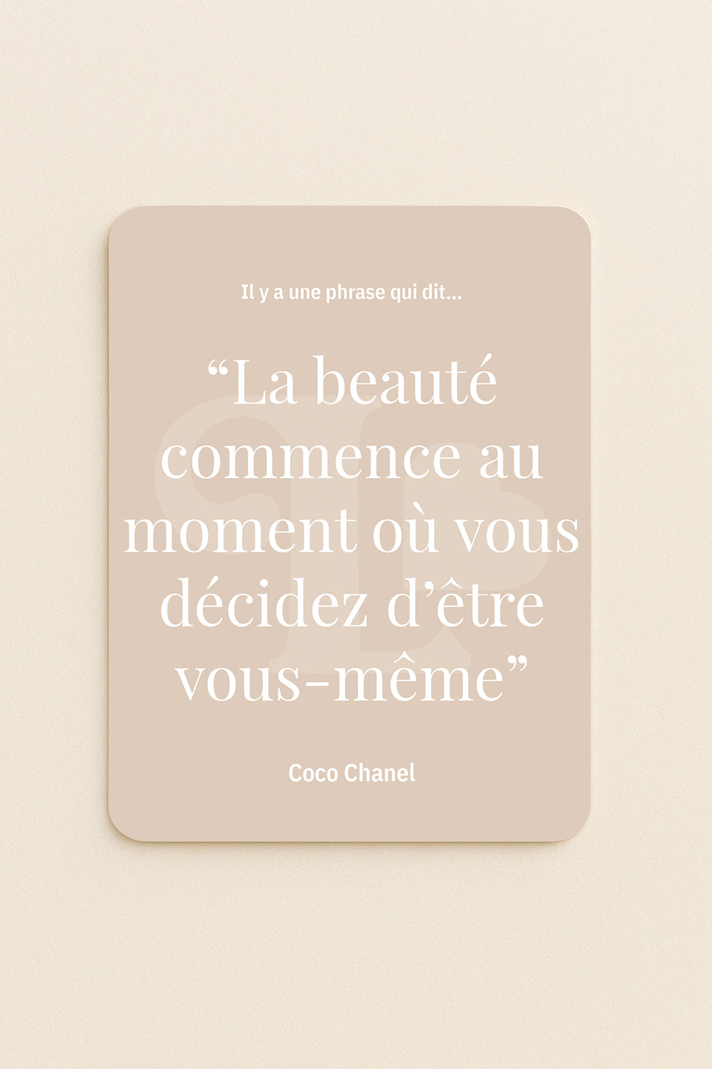 Offrez cette carte à celles et ceux qui comprennent que la vraie beauté commence par l’acceptation de soi. Une citation forte, pour une personne inoubliable.
