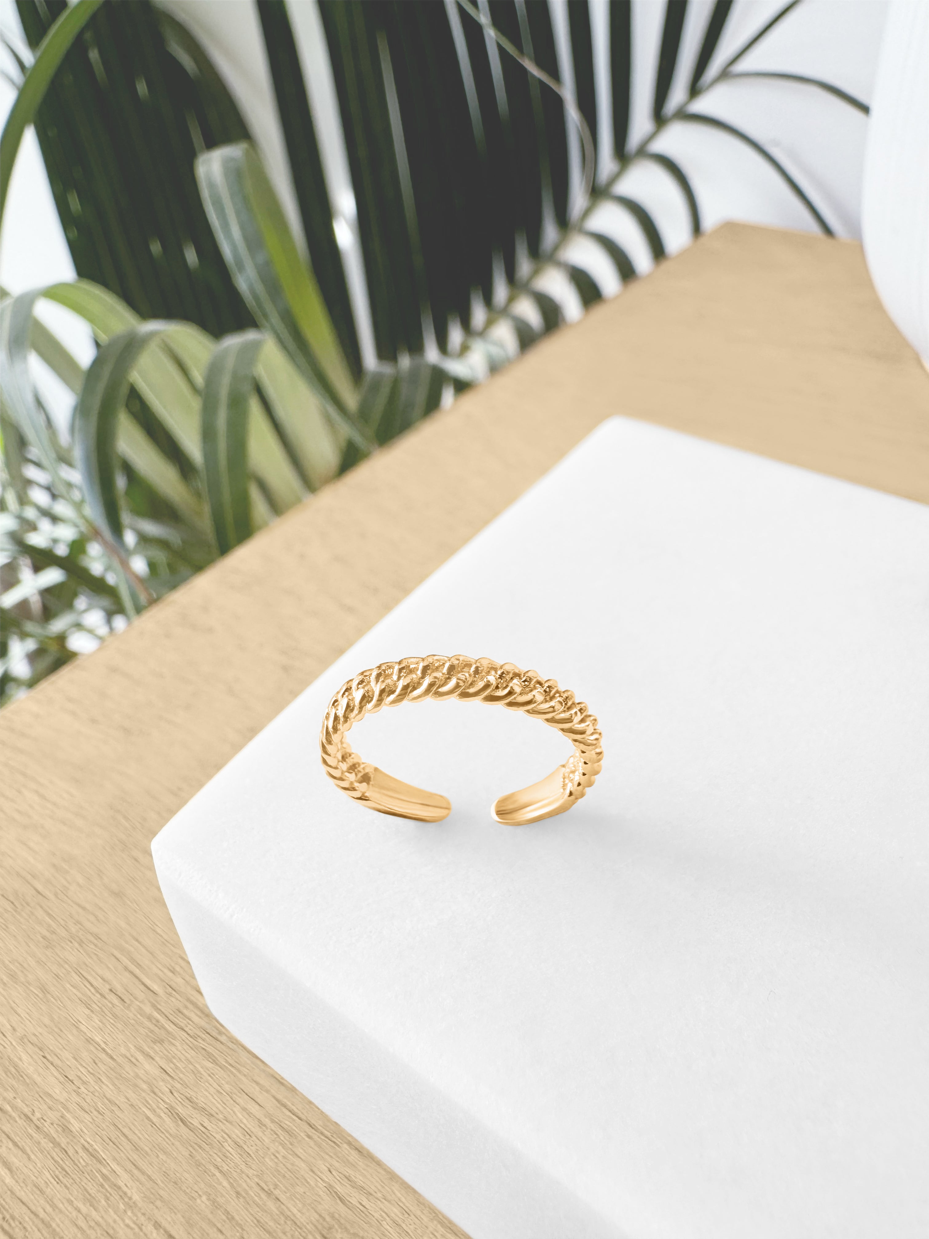 Bague "Lois" en plaqué or 3 microns de Lolidou. Découvrez l'élégance intemporelle de notre bague chaîne, un bijou qui allie finesse et caractère. Avec son design entrelacé, elle incarne la force et la délicatesse, s'adaptant parfaitement à toutes les occasions. Ajustable de la taille 48 à 57, elle résiste à l'eau, au soleil, et ne noircit pas. Hauteur du corps de la bague : 3 mm.