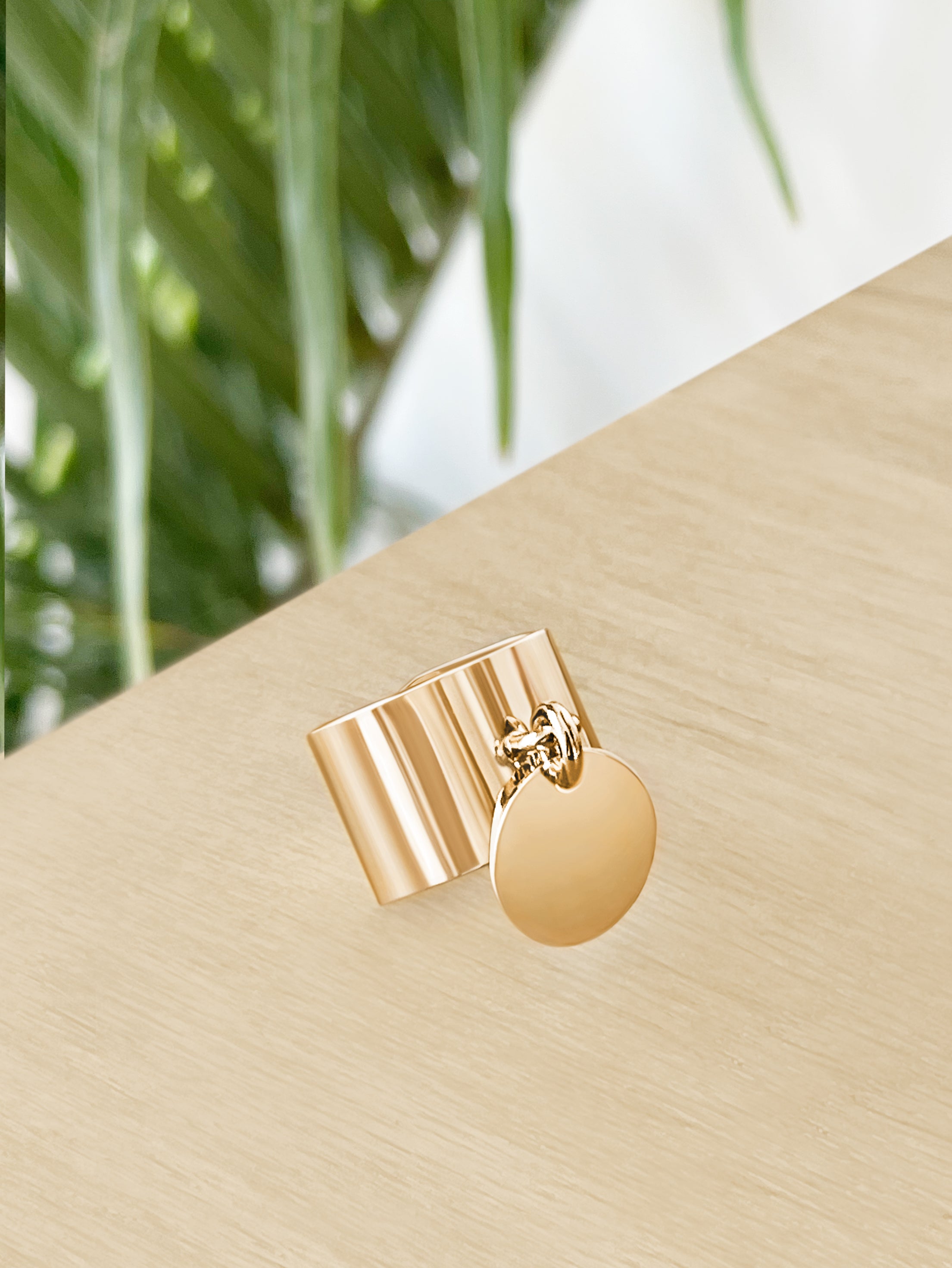 Découvrez l'élégance intemporelle de la Bague "Suzie" en plaqué or 3 microns de Lolidou. L'anneau lisse est agrémenté d'une médaille ronde lisse d'un diamètre de 13 mm. Ajustable de la taille 50 à 60, elle résiste à l'eau, au soleil, et ne noircit pas. Hauteur du corps de la bague : 13 mm.