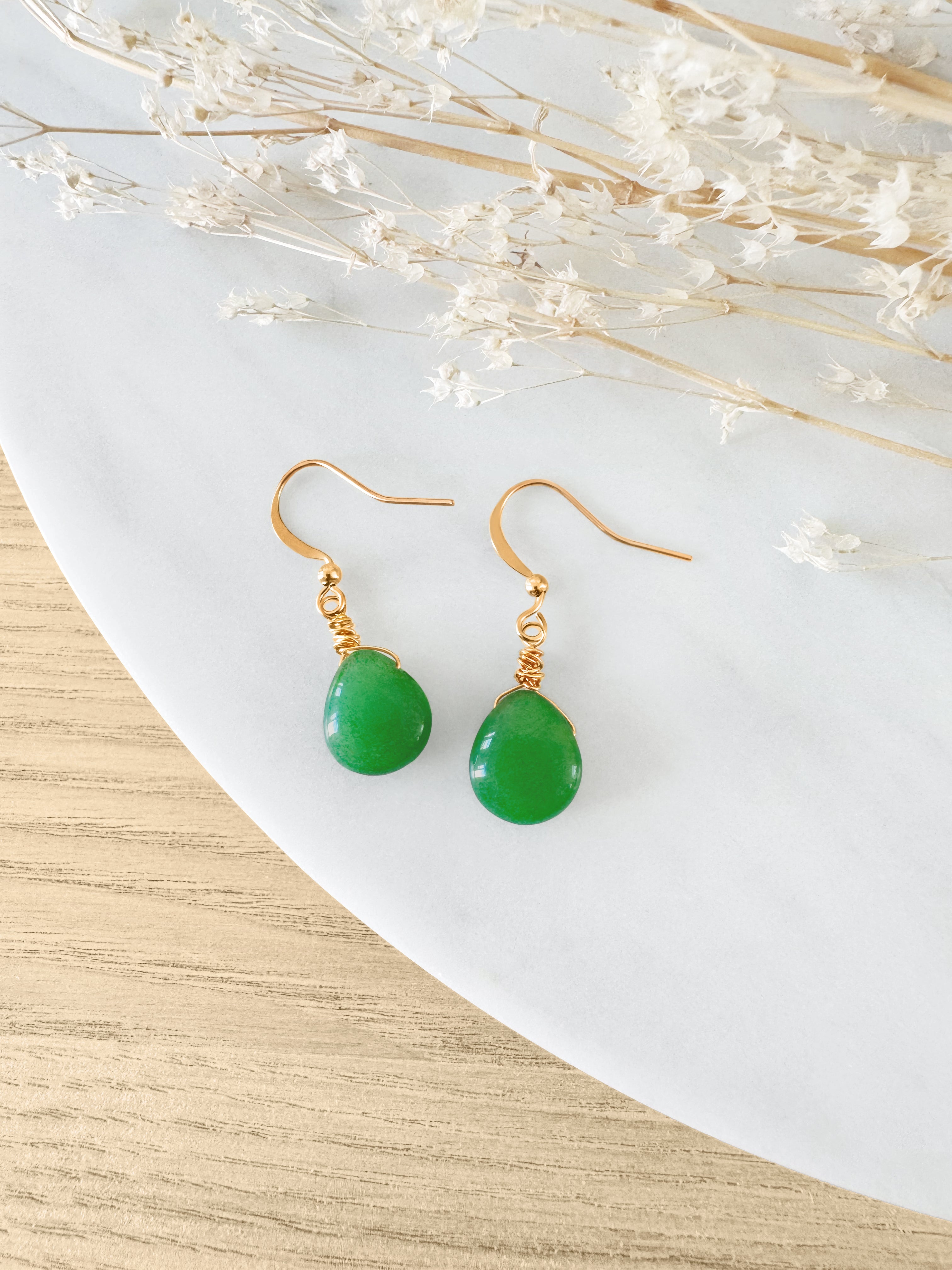 Les boucles "NOYA" en plaqué or dévoilent de sublimes gouttes de Jade vert, une pierre porte-bonheur symbole d’harmonie et de sérénité. Avec leur hauteur de 30 mm, elles offrent une allure naturelle et raffinée, parfaites pour illuminer votre style d’un charme frais et authentique.