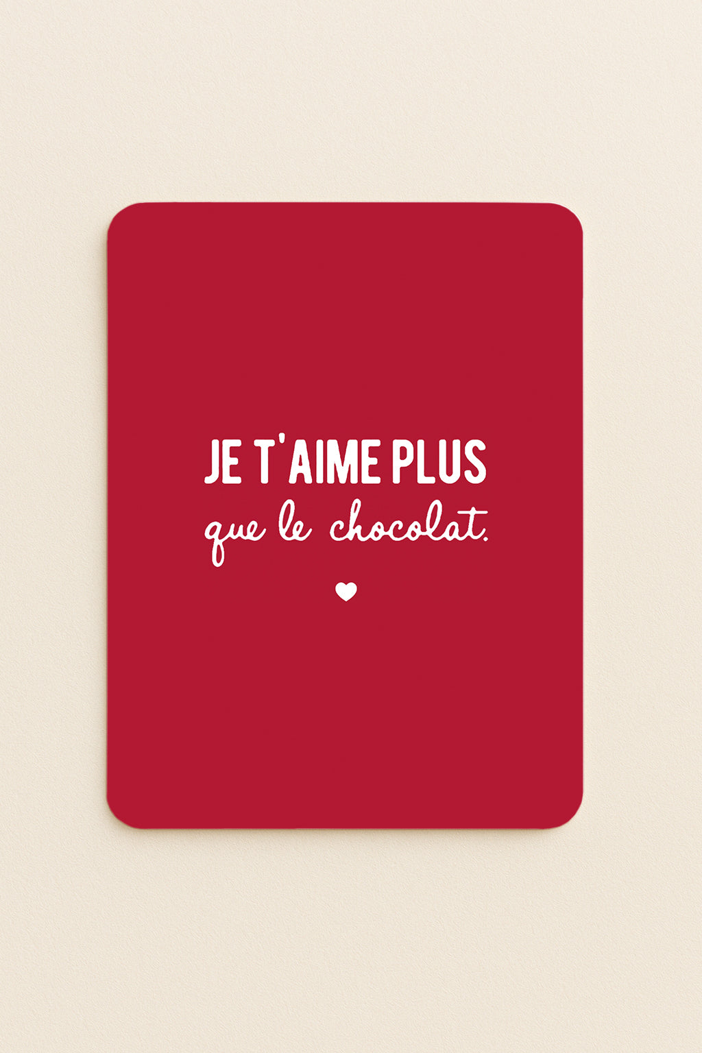 Un message tendre et délicieux, parfait pour dire je t’aime de la façon la plus douce (et la plus gourmande) qui soit.À offrir avec un bijou, une surprise ou juste un câlin. Cette carte est idéale pour célébrer l'amour, les petites attentions et les grands sentiments. Parce qu’aimer plus que le chocolat…c’est pas rien ! Un petit format pour un amour XXL.