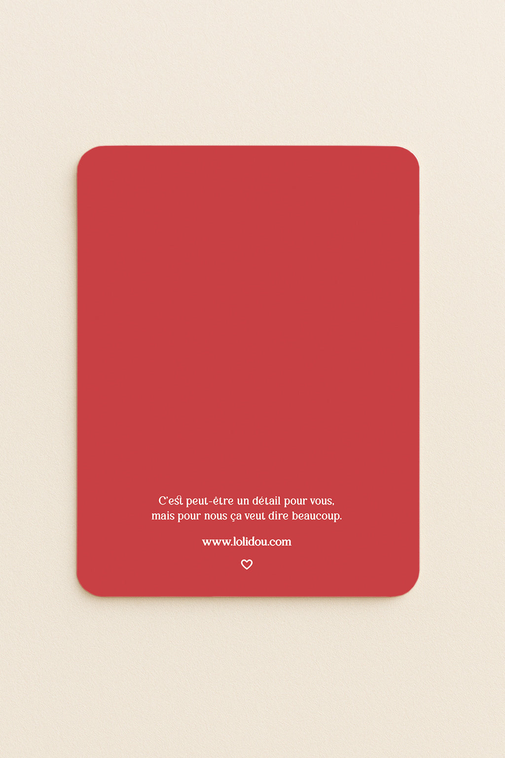 À offrir, encadrer ou collectionner, cette carte est une belle déclaration… car au fond, tout ce dont on a vraiment besoin, c'est d'amour. Un petit format pour un grand message.